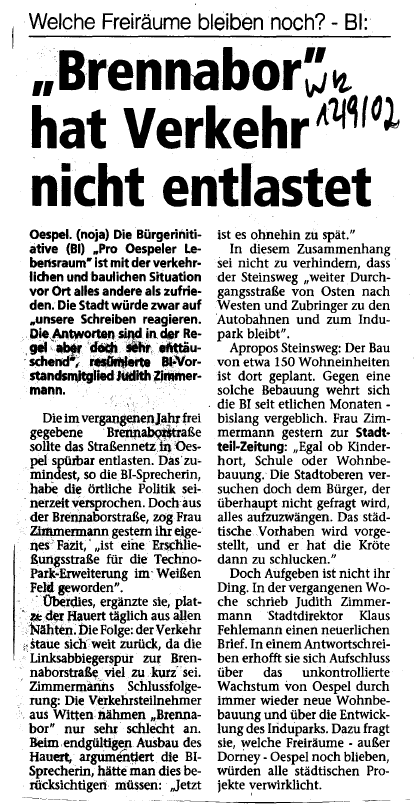 Leserbrief Westfälische Rundschau 14.09.02: Initiative steht für Versagen der Politik